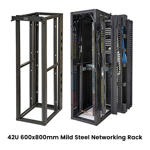 Heavy-duty racks fabricated from CRCA steel with powder-coated finishes provide rugged protection for servers, switches, patch panels, and audio-visual hardware. Available in multiple heights and depths (e.g., 42U, 600W × 800D), they support high-density equipment deployment in enterprise environments. - Network Cabinets & Outdoor Enclosures: